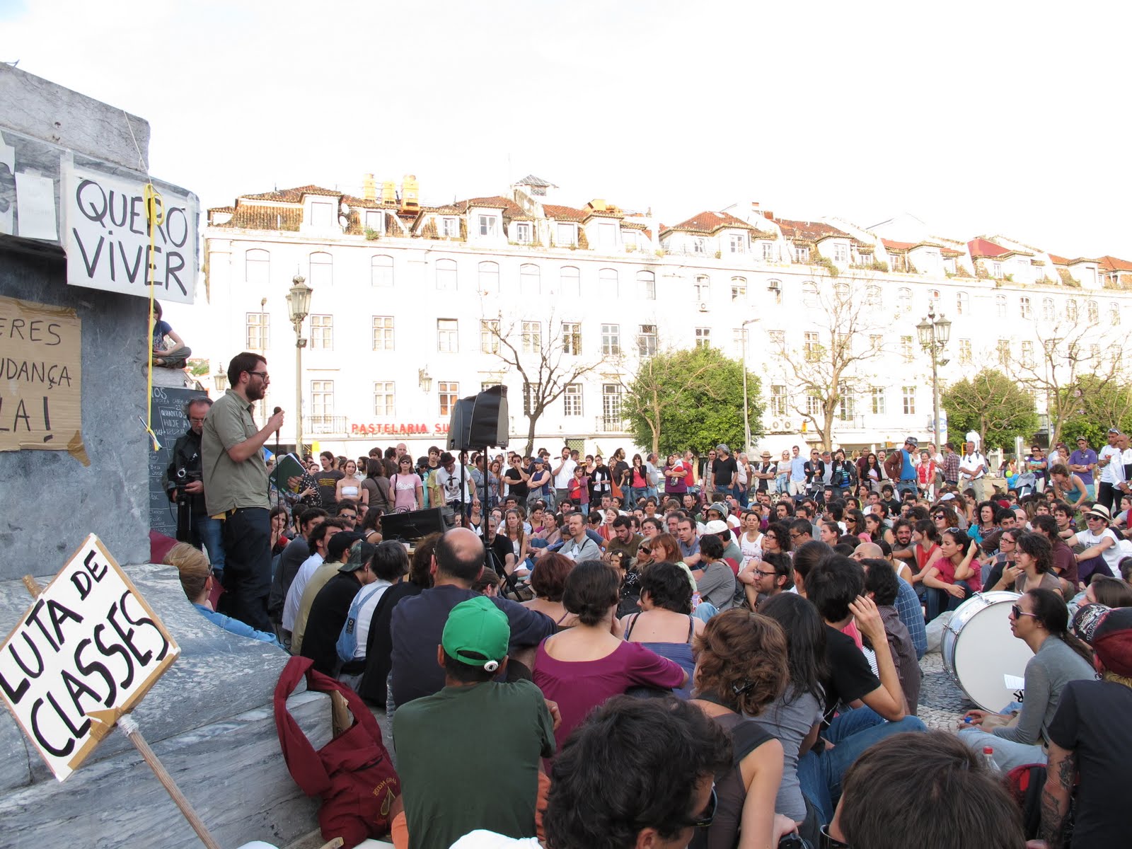 Os manifestantes, reunidos na Praça do Rossio, conscientes de que esta é uma acção em marcha e de resistência, acordaram declarar o seguinte: